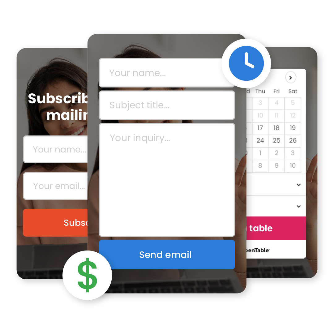 Invite your visitors to book a restaurant table, sales call, or consultation, straight from your Lead Bubble with pretty much any calendar or booking service.